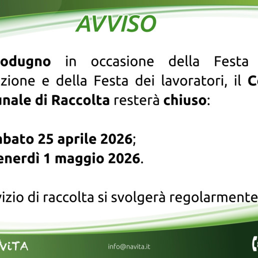 A Modugno, in occasione della festività di Ognissanti, il Centro Comunale di Raccolta e l’Infopoint resteranno chiusi sabato 1° novembre.